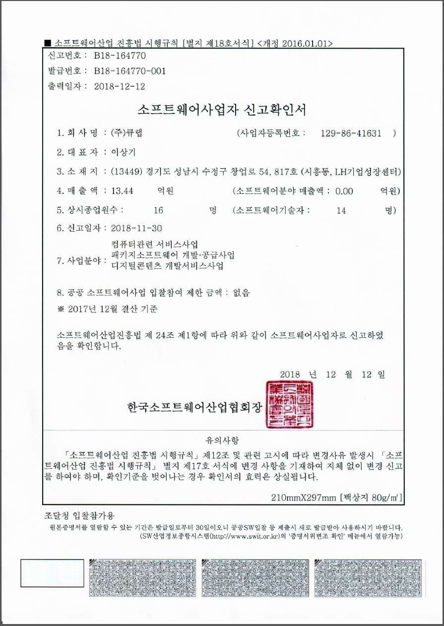 Software Business Registration Certificate